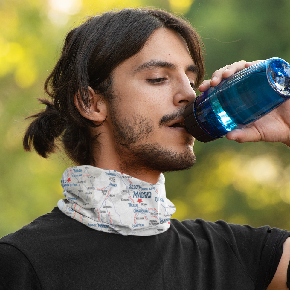 This beautifully decorated bandanna features the route maps of the Camino de Santiago, making it a perfect accessory for all who love or are about to embark on this historic journey.