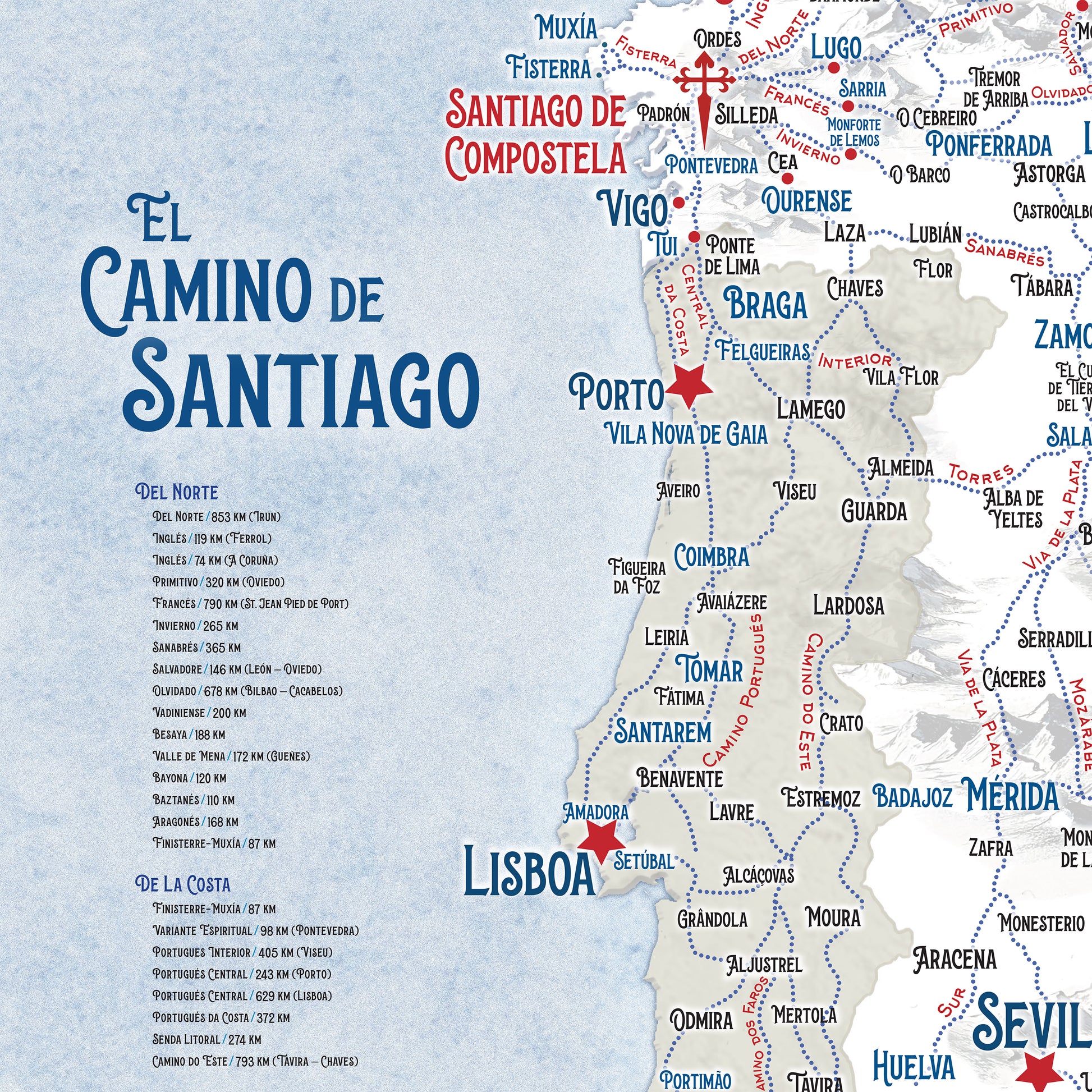 The Camino Journeys Wall Map: This poster is truly extra special—large and commanding at 24" x 36", it becomes a striking focal point in any room. What makes this version particularly unique is that it details almost all of the routes leading to Santiago, complete with the distance for each trail. Use it to dream, plan, and get excited for the journey ahead. Buen Camino!